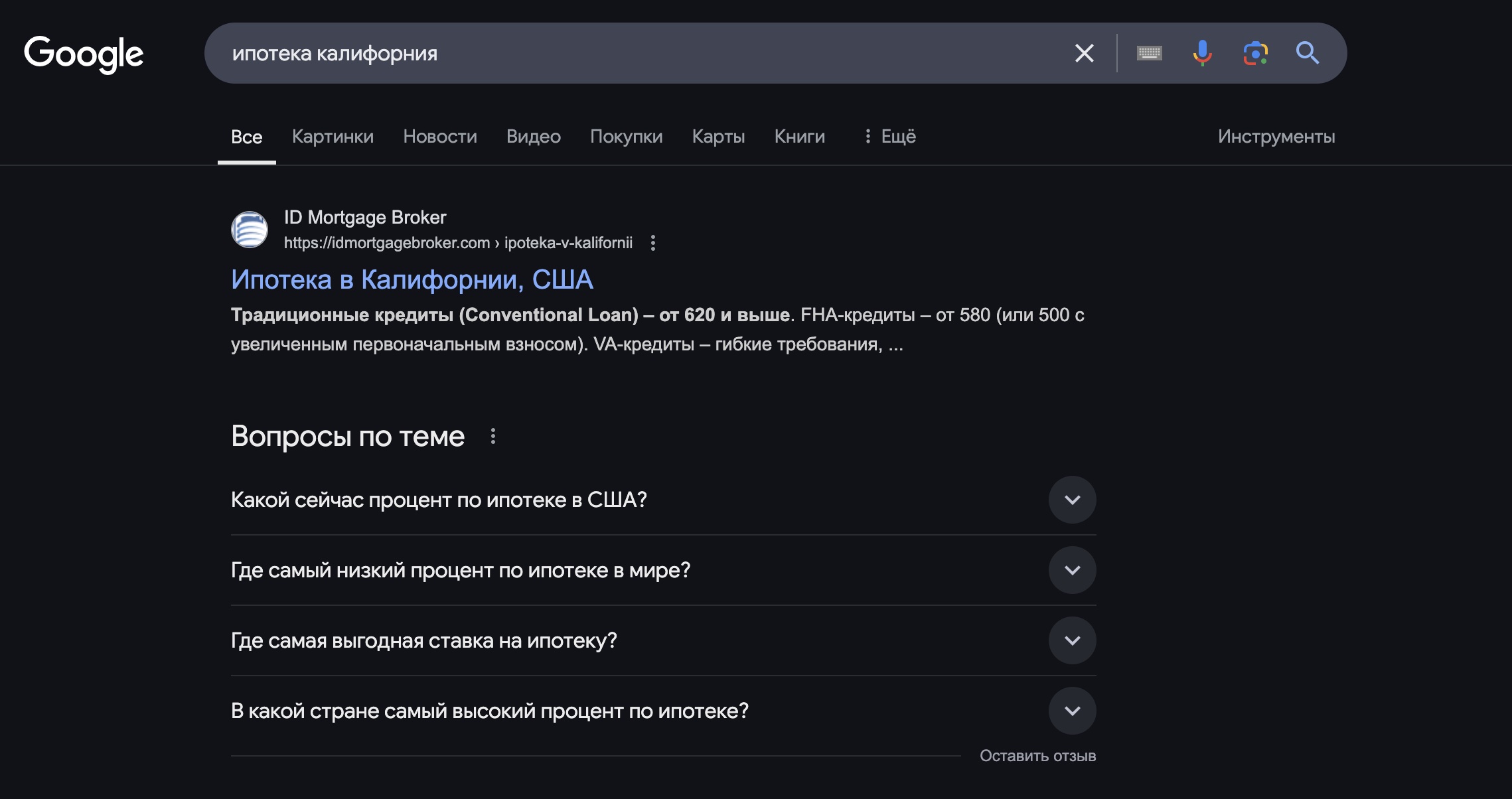 Мы первые в Google по запросу "Ипотека в Калифорнии". Свяжитесь для консультации!