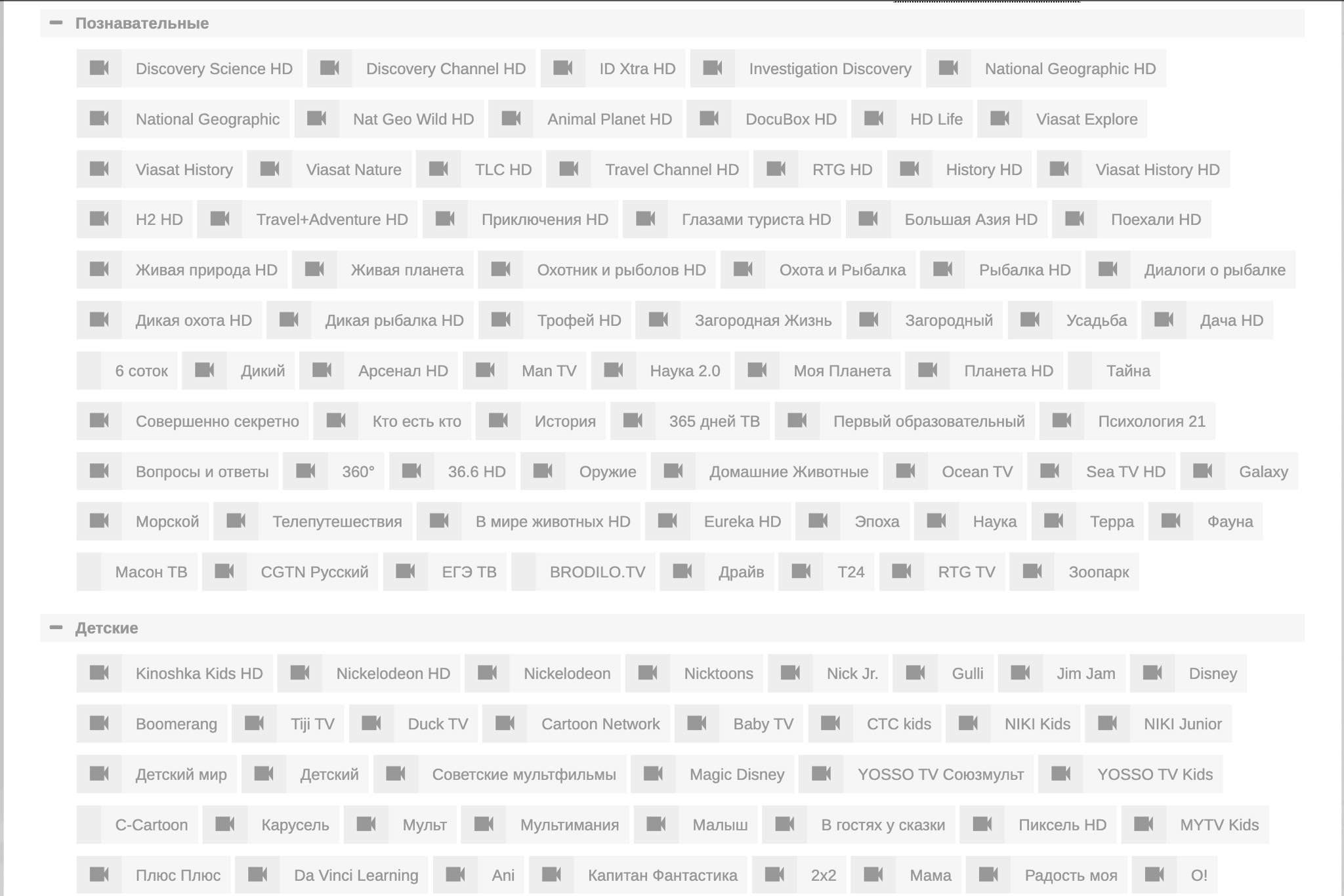Вы сможете смотреть в хорошем качестве множество телеканалов, список телеканалов прилагаю на фото ниже. Все каналы отсортированы по категориям и большинство каналов имеют телегид и возможность смотреть в записи за прошедшие 3 дня.
