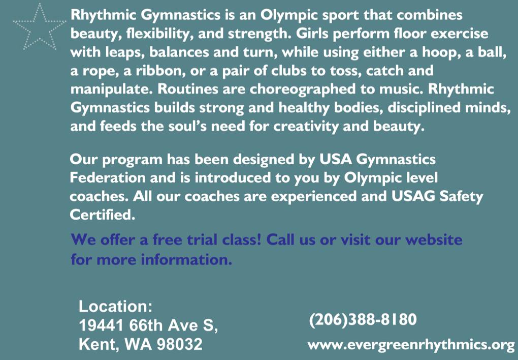 Evergreen Rhythmics Academy - центр художественной гимнастики приглашает детей на занятия художественной гимнастикой!
