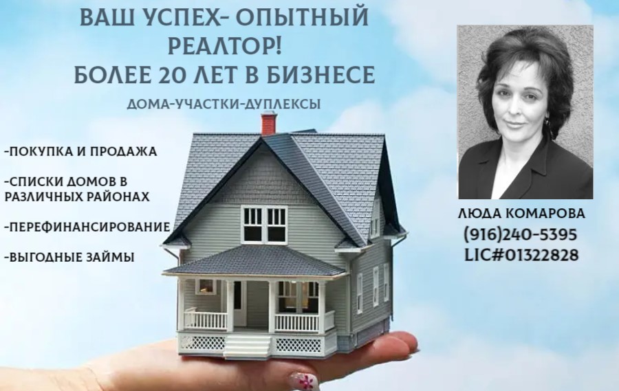 Здравствуйте! Я Люда, местный риелтор в Сакраменто. Готова помочь вам купить, продать или сдать в аренду недвижимость. Я предоставлю вам квалифицированную консультацию и подберу оптимальное решение для вас.