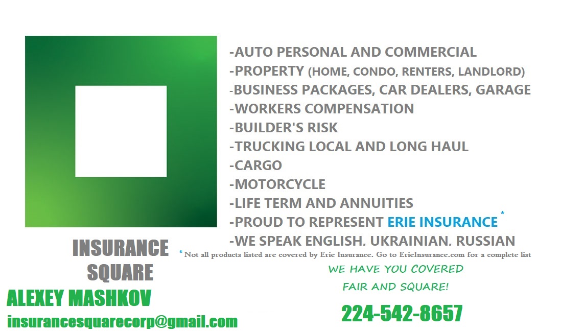 Ми працюємо зі Erie insurance (рейтинг A++) та іншими компаніями