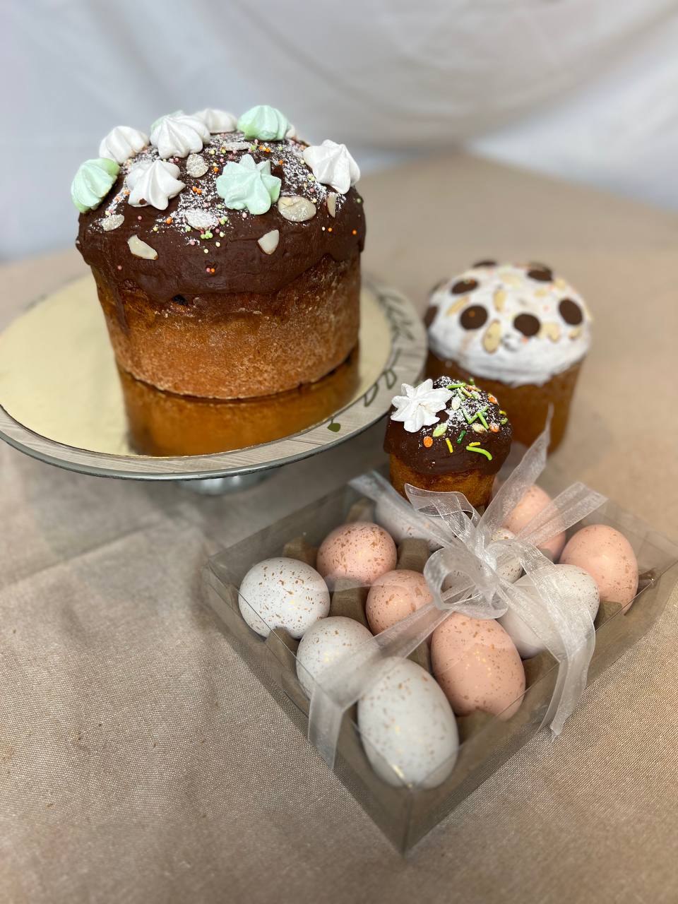 У нас будет 4 размера: Large - 25$, Medium - 20$, Small - 15$, Extra small 10$, - плюс несколько наборов мини куличи 4 в наборе - 12$.