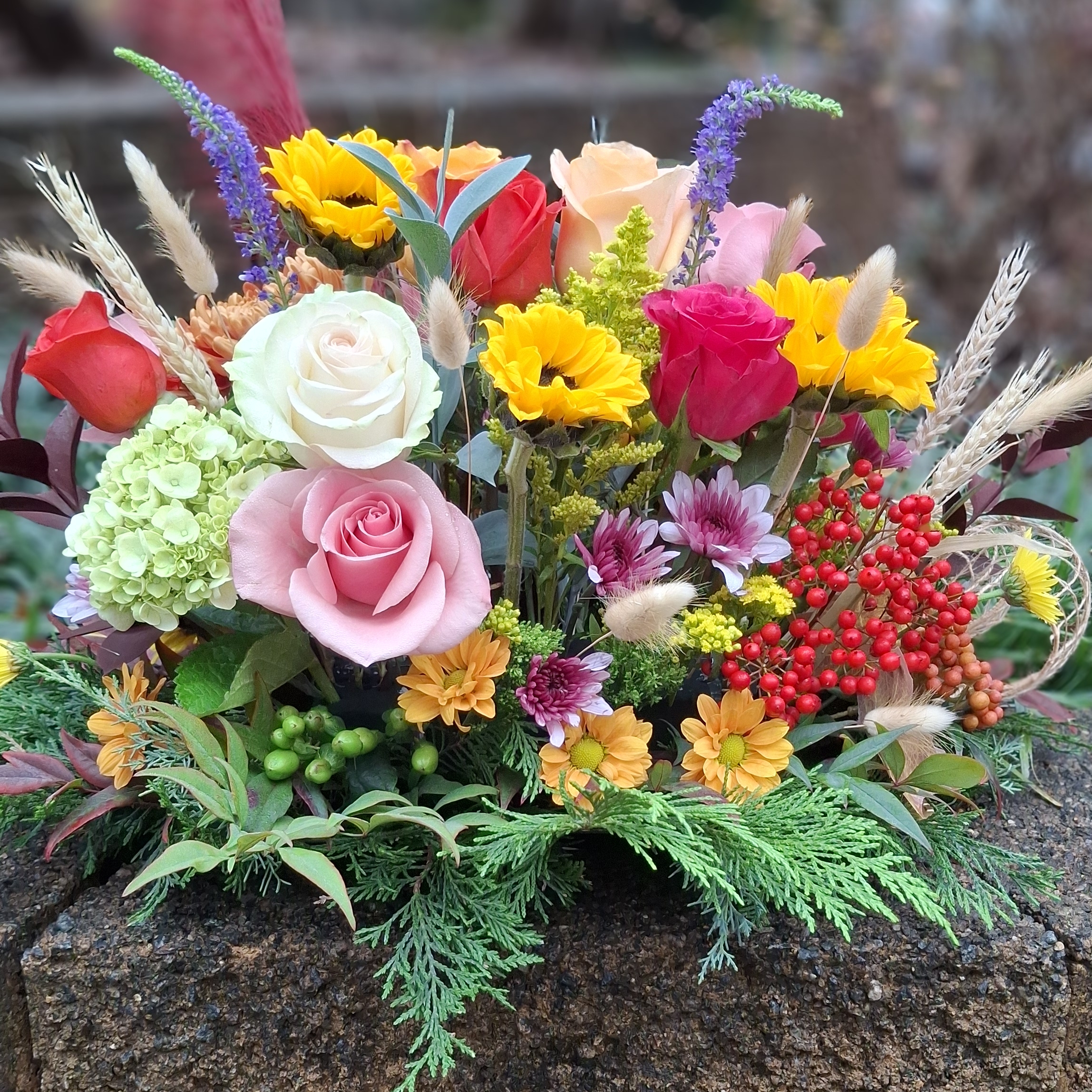 I also create sympathy arrangements: wreaths, standing pieces, and gentle bouquets for memorials. In these moments, it’s important to express respect and support, and I always select calm, appropriate flowers and colors.