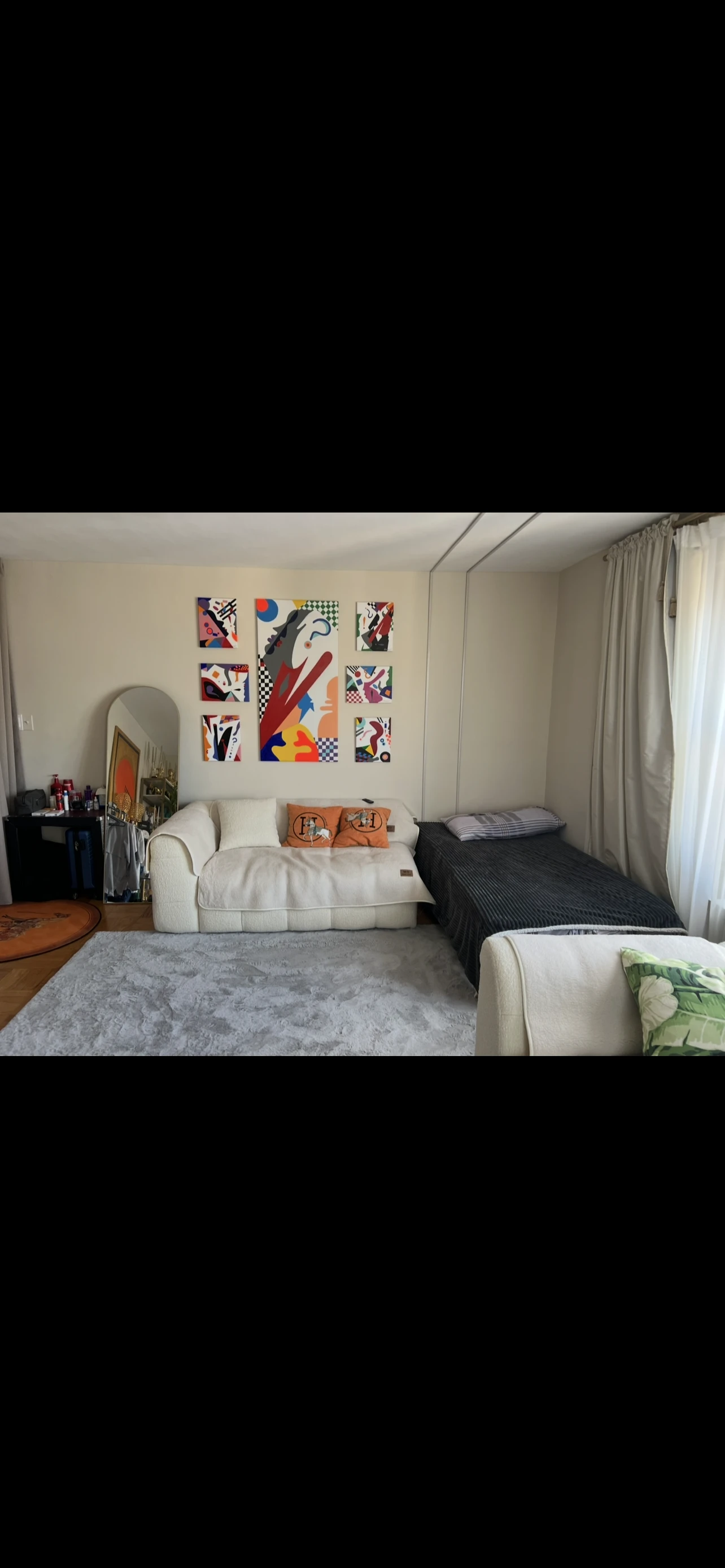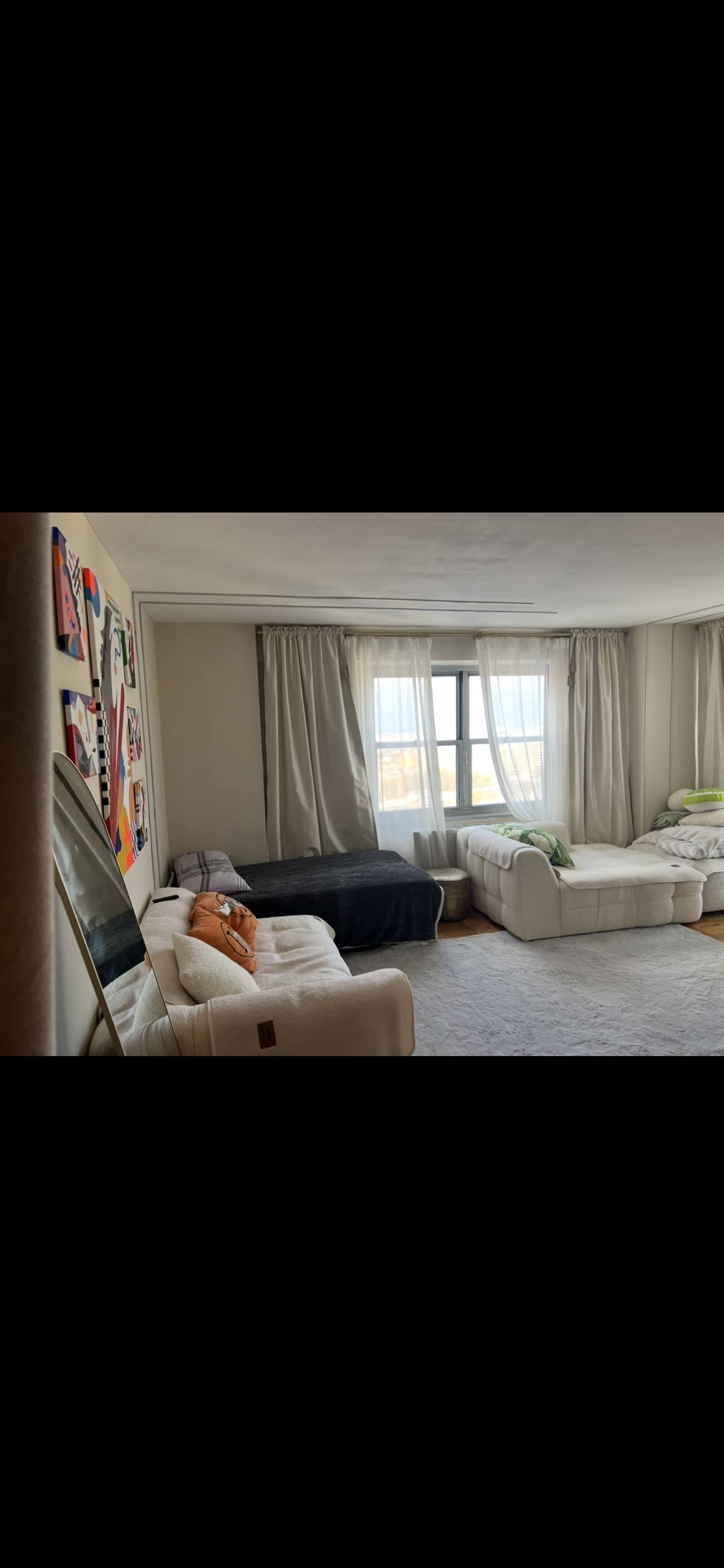Сдам большой Ливинг рум с балконом на высоком этаже, чистая все новое дизайнерски оформлено, включая большой новый телевизор и инет входит в стоимость комнаты.