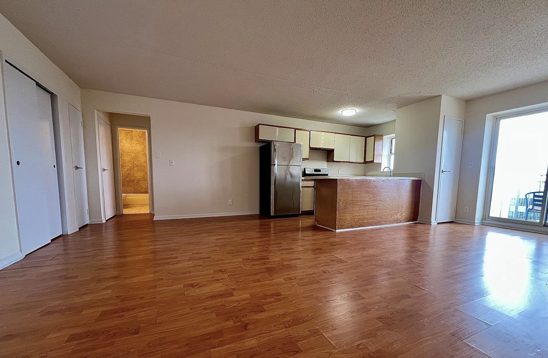 Квартира с балконом с направлением в сторону Манхэттена, большим количеством шкафов и хорошим естественным светом.Открытая кухня с stainless steel техникой.