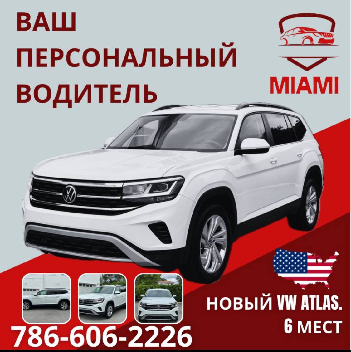 Специально для вас, в любое время и в любом месте - ваш надежный водитель всегда на связи. Просто позвоните по номеру, и ваш личный водитель VW Atlas будет готов доставить вас куда угодно в Майами.