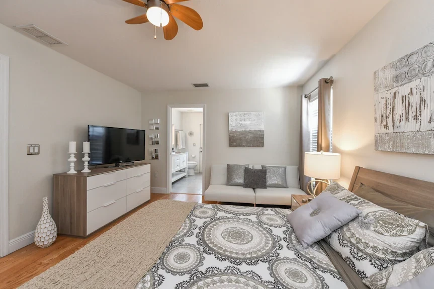 Наслаждайтесь великолепным бассейном с подогревом с отдельно отапливаемым спа-салоном и прекрасным открытым патио, который мирно расположен в тропическом частном заднем дворе, все огорожено - это будет одно из ваших любимых мест!