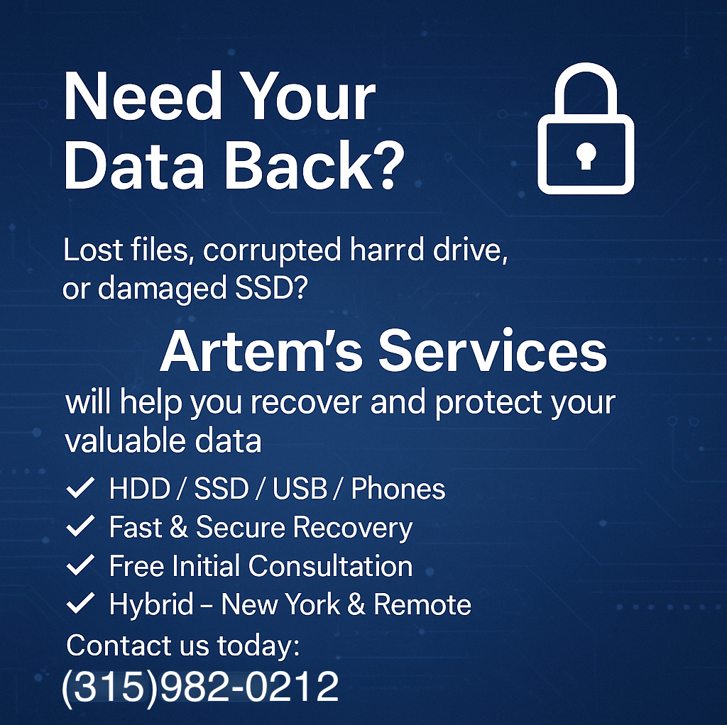 В Artem's Services мы помогаем частным лицам и предприятиям восстанавливать, защищать и управлять своими данными.