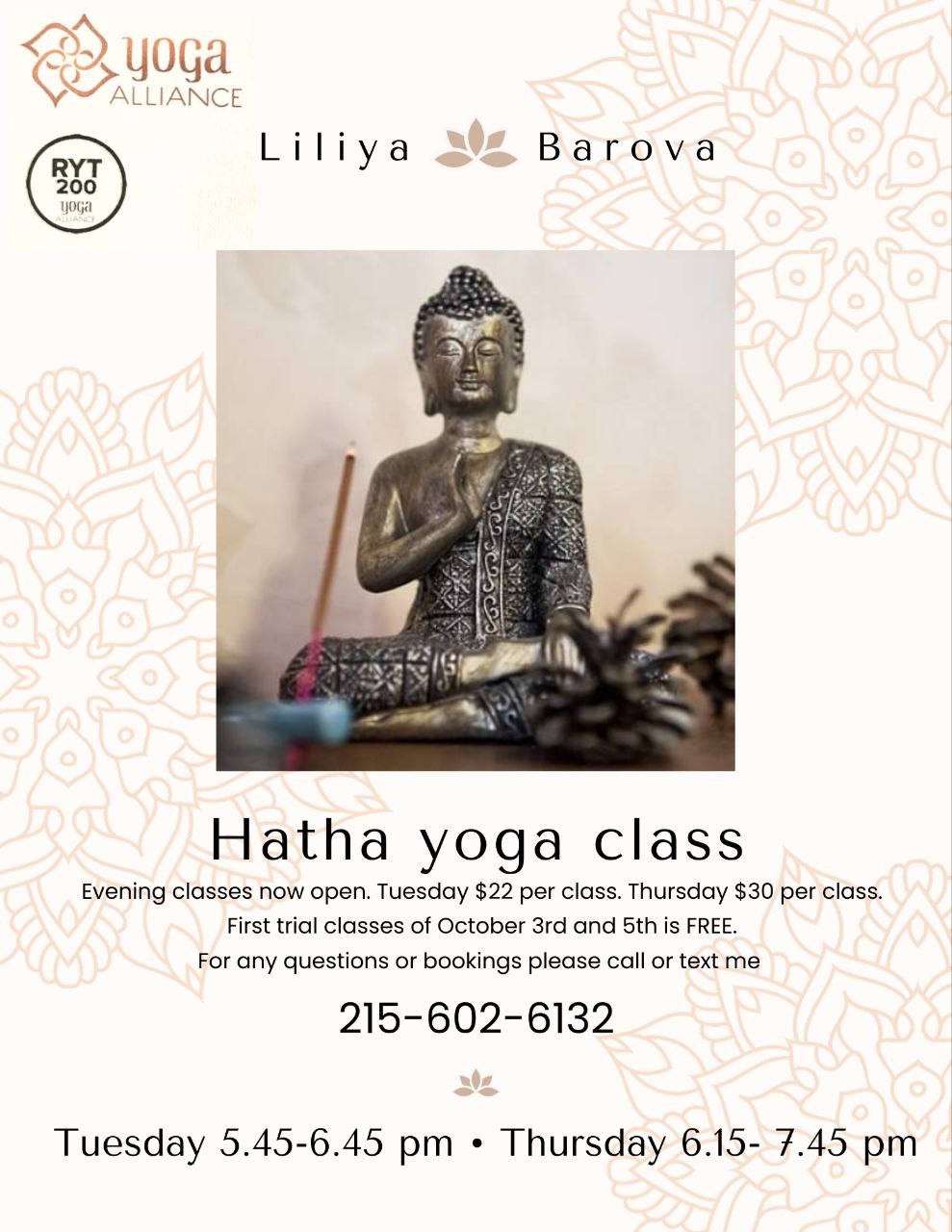 First trial classes of October 3rd and 5th is FREE.
