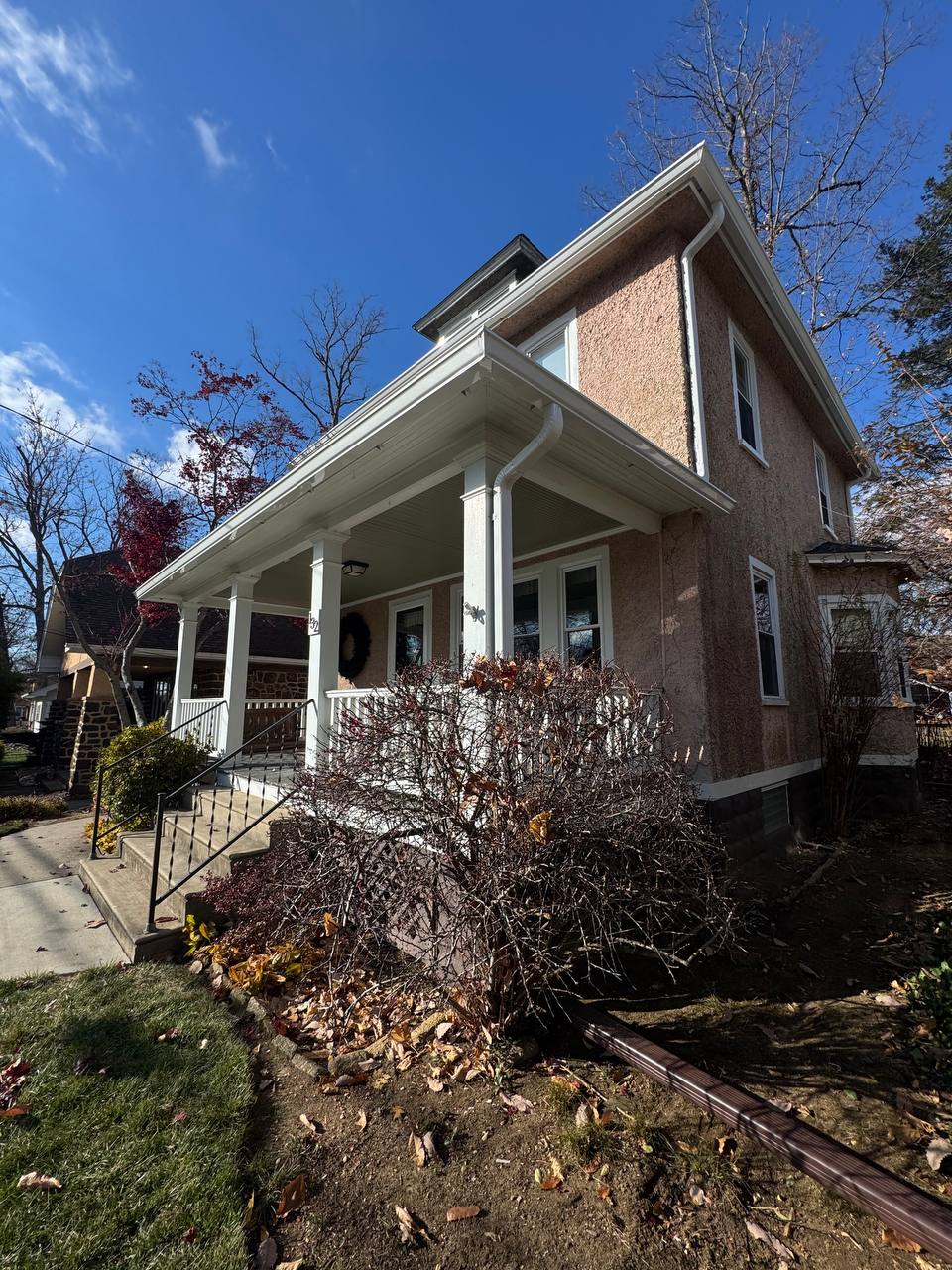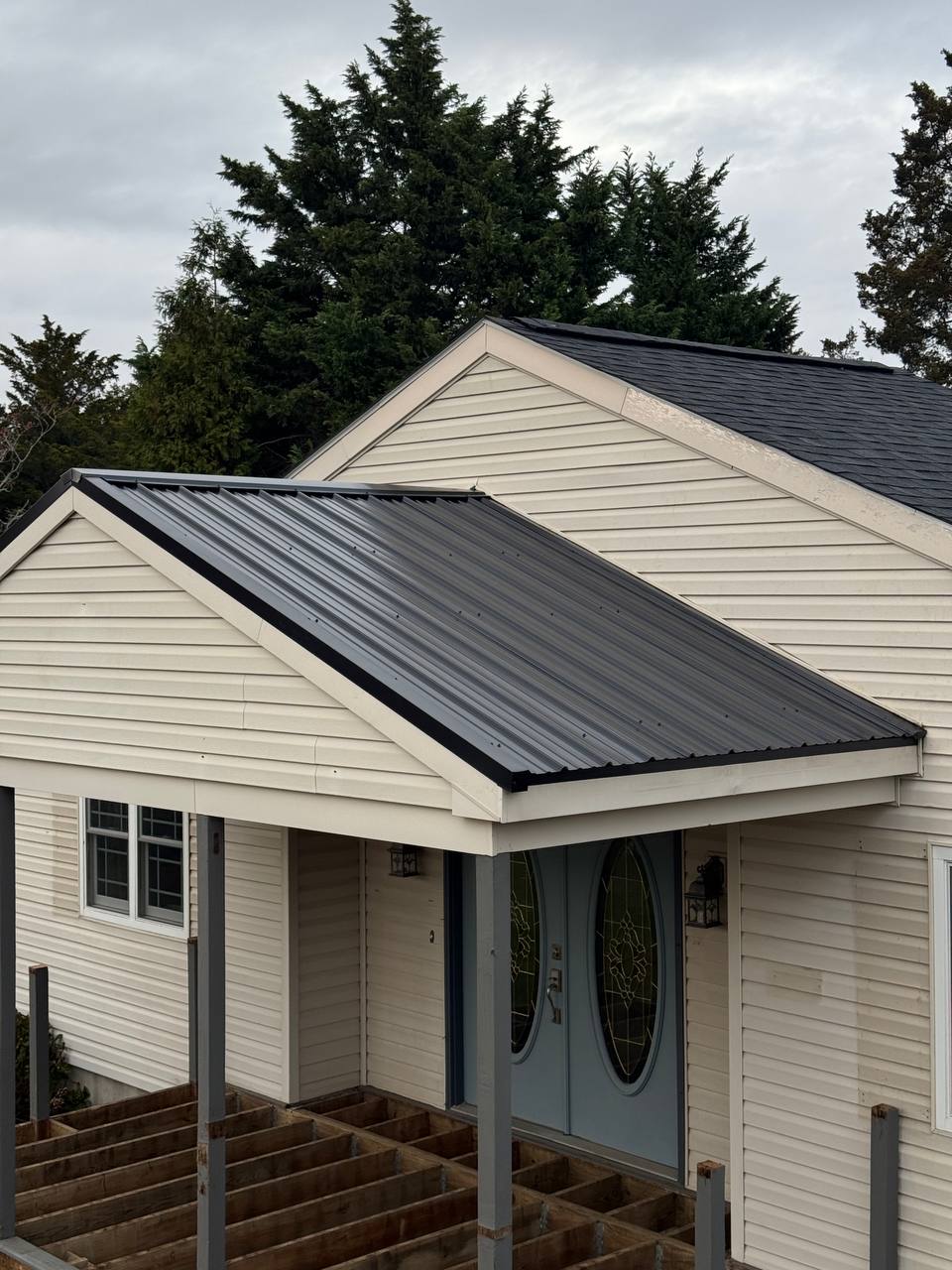 Выполняем внешние работы, замена и установка целой водосточной системы Gutters, и устанавливаем защиту на водосточный желоб чтобы не забивалась водосточная система обшиваем жестью окна двери.