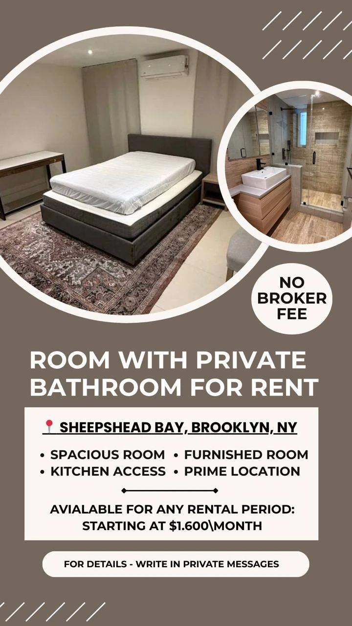Сдаётся просторная комната с личной ванной. Sheepshead Bay, Brooklyn, NY