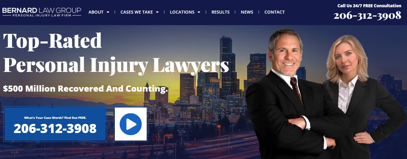 Bernard Law Group is a experienced and aggressive personal injury law firm serving all of Washington state from our office in Seattle. We have recovered over $500 million dollars for accident and injury victims of the past 40 years. Our Injury lawyers handle cases such as car accidents, truck accident, motorcycle accidents, slip and falls, premises liability, medical malpractice and much more. Consultations are free and we charge no fee unless we win you case.