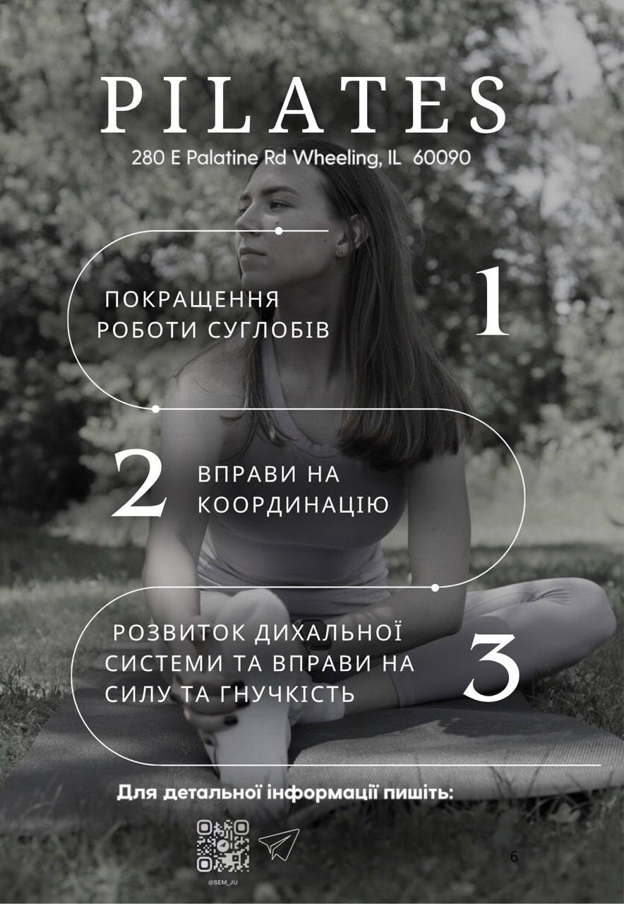 Юлія — сертифікований інструктор з пілатесу, який допоможе вам покращити самопочуття, повернути легкість рухів та знайти гармонію між тілом і диханням. Заняття підходять для будь-якого рівня підготовки та проводяться у комфортній, дружній атмосфері.