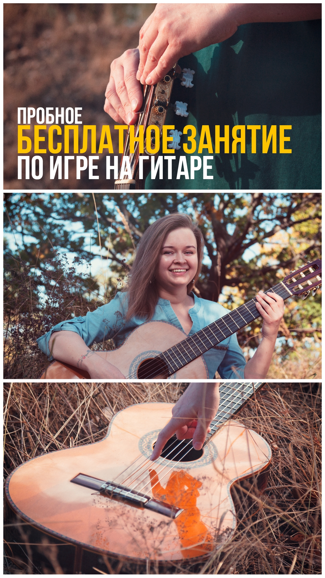 Зі мною ви можете навчитися грати по нотах, по слуху або співати пісні під гітару. У своїй роботі використовую різноманітний цікавий матеріал. Професійно, індивідуальний підхід. Заняття підходять як для дітей, так і для дорослих та підлітків.