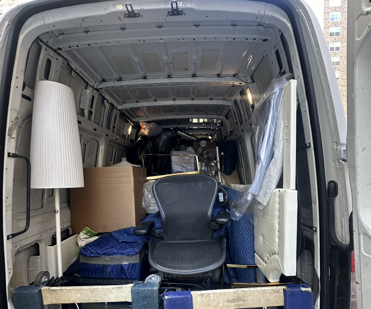 Професійна послуга переїзду та доставки на фургоні Mercedes Sprinter.