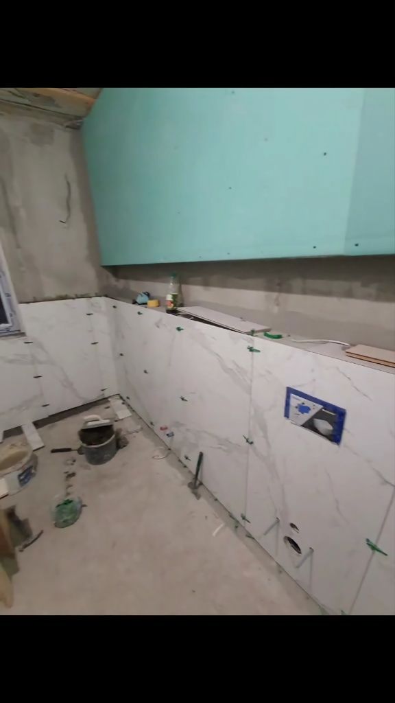 Укладка плитки (пол, стены, санузел, кухня).