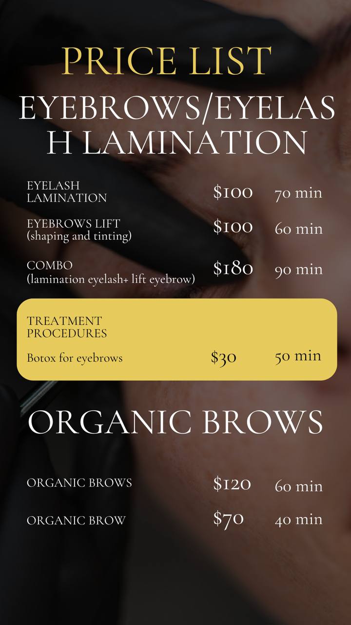 • Брови и ресницы (оформление, окрашивание, ламинирование, organic brows)